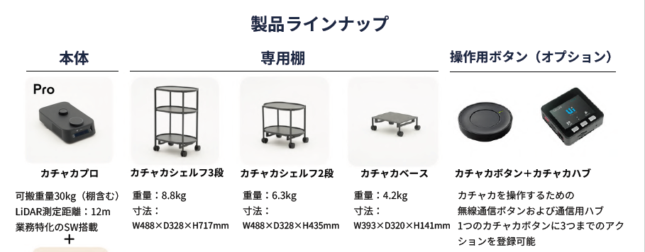 コンパクトなロボットですが、専用棚と組み合わせて最大30kg